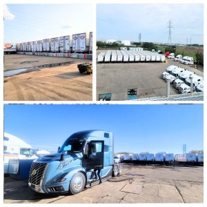 Security is a top priority—our lot is fully fenced, gated, and monitored 24/7 with surveillance cameras. You can have peace of mind knowing your equipment and cargo are well-protected.
